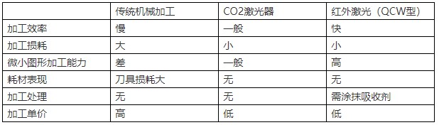 激光加工主要采用CO2激光器與QCW脈沖激光器加工。