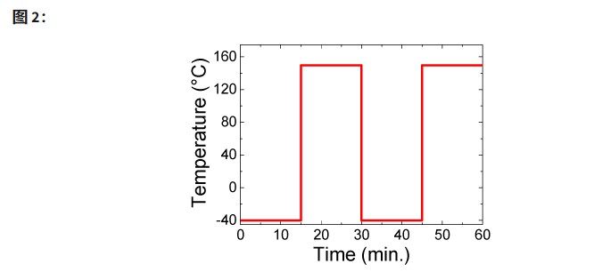 【熱沖擊測(cè)試的溫度曲線。-40 °C 室和 +150 °C 之間的傳輸時(shí)間為 15 秒。】