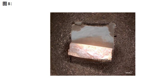 圖8顯示了連續(xù) TPC 層頂部剪切掉的銅箔的光學(xué)圖像。失效模式部分在陶瓷內(nèi)部,這表明銅/陶瓷和膏/箔界面都不是PBC的薄弱環(huán)節(jié)。
