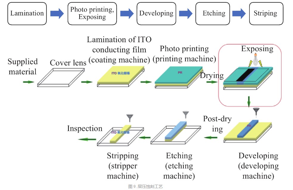 貼合:在整個(gè)母卡上鍍一層ITO導(dǎo)電膜(Indium Tin Oxide),用于導(dǎo)電;