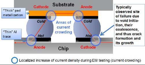 大多數(shù)關(guān)于倒裝芯片無鉛焊點電遷移的公開數(shù)據(jù)都與有機基板 (PCB)上的互連有關(guān),幾乎沒有任何關(guān)于陶瓷基板上無鉛焊點電遷移的信息;高鉛焊料今天仍用于陶瓷上的互連。這項工作首次展示了對組裝到薄膜Al上的硅芯片上標稱直徑為40 μm或30 μm且間距為100 μm的無鉛 (SAC305) 倒裝芯片焊接連接中電遷移的綜合研究結(jié)果陶瓷基板。