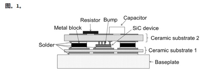就電氣性能而言,SiC器件的開關(guān)時間非常短,這會產(chǎn)生很大的浪涌電壓。為了防止這種浪涌,選擇了將Sic金屬氧化物半導(dǎo)體場效應(yīng)晶體管(MOSFET)夾在兩個陶瓷基板之間的結(jié)構(gòu)。通過采用這種結(jié)構(gòu),可以降低模塊的電感。