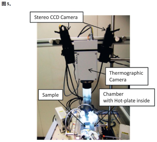 在本文中,通過對稱設(shè)計碳化硅陶瓷基板兩側(cè)的Cu布線圖案以平衡應(yīng)力,應(yīng)用了減少陶瓷基板翹曲的對策。為了確認對策的效果,在50℃和250℃下測定陶瓷基板的翹曲,求出從50℃到250℃的位移。數(shù)字圖像相關(guān)(DIC)方法用于測量陶瓷基板的翹曲。如圖5所示,將陶瓷基板樣品放置在內(nèi)部帶有熱板的腔室中。將樣品加熱至250℃,50℃和250℃之間的翹曲變化由立體CCD相機觀察確定。
