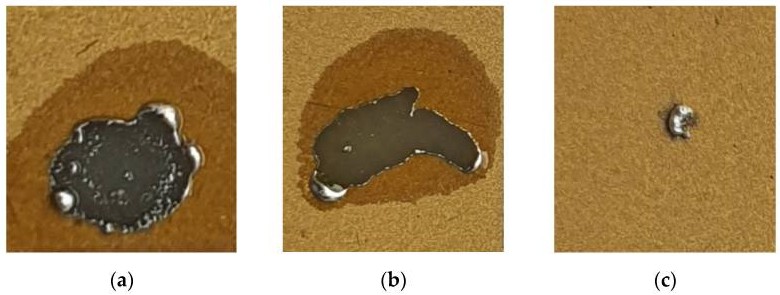 (圖2焊料熔化過程的結(jié)果:(a,b)In焊料和助焊劑同時(shí)使用;(c) 使用無助焊劑的In焊料。)