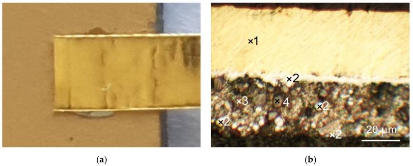 第二步(圖1b)將金屬條的接合區(qū)域上涂有助焊劑的金屬條放置在熔化的焊料上,這是我們方法中的關(guān)鍵步驟。助焊劑確保精確的劑量和可控的擴(kuò)散,助焊劑改變了焊料的表面張力并啟動了兩個(gè)連接表面的即時(shí)潤濕。由于附著力強(qiáng),焊料被困在接合表面之間。焊料以連接元件之間的薄層形式快速均勻地?cái)U(kuò)散,陶瓷上的金屬薄層既沒有被破壞也沒有分層,在接頭體積中形成了金屬間化合物。