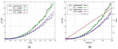 結(jié)果表明,接頭不是測試樣品中的主要熱源。在準(zhǔn)靜態(tài)加熱期間,最高溫度在樣品的中心部分(圖12)。這是層不均衡和接頭阻力的影響。此外,金屬引線還具有作為散熱器的附加功能,可散發(fā)樣品中產(chǎn)生的熱量。應(yīng)該注意的是,盡管層是樣品的主要部分,但接頭溫度和層溫度之間的差異很?。?/span>~5-8K)。陶瓷基板決定了樣品中的熱量分布。