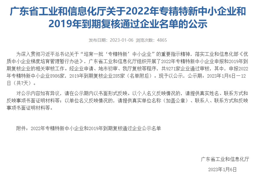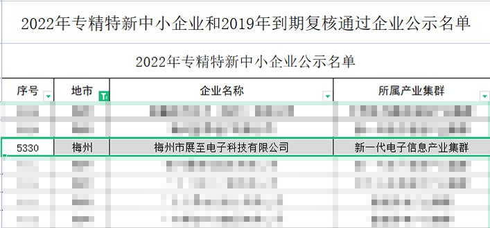 近日,廣東省工業(yè)和信息化廳組織開展了2022年專精特新中小企業(yè)申報和2019年到期復核企業(yè)的相關審核工作,展至電子科技憑借過硬的產(chǎn)品力和品牌號召力,榮獲“專精特新”企業(yè)稱號