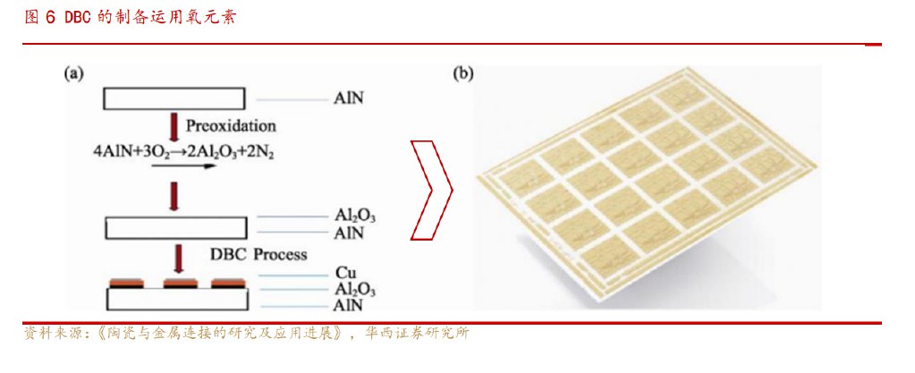 DBC 陶瓷基板制備首先在(Cu)和陶瓷基片(Al2O3 或 AIN)引入氧元素,然后在1065°C 形成 Cu/O 共晶相(金屬銅熔點(diǎn)為1083°C),進(jìn)而與陶瓷基片和銅箔發(fā)生反應(yīng)生成 CuAl02 或 Cu(Al0),實(shí)現(xiàn)銅箔與陶瓷間共晶鍵合。由于陶瓷和銅具有良好的導(dǎo) 熱性,且銅箔與陶瓷間共晶鍵合強(qiáng)度高,因此DBC基板具有較高的熱穩(wěn)定性,已廣泛應(yīng)用于絕緣柵雙極二極管(IGBT)、激光器(LD)和聚焦光伏(CPV) 等器件封裝散熱中。