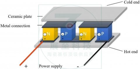 由于當(dāng)時(shí)可用的材料,所涉及的大電流產(chǎn)生的電阻熱主導(dǎo)了珀?duì)柼?yīng)。如今,隨著材料的進(jìn)步,這些連接點(diǎn)已變得更加實(shí)用,可用作熱電熱泵,其功能與基于碳氟化合物的蒸汽壓縮制冷相同。雖然它們?nèi)匀徊蝗缯羝h(huán)裝置有效,但它們沒(méi)有運(yùn)動(dòng)部件或工作流體,并且尺寸可能非常小。純金屬的熱電效應(yīng)很小。如果使用N型半導(dǎo)體和P型半導(dǎo)體來(lái)代替金屬,效果會(huì)大得多。通電后,在上部觸點(diǎn)附近產(chǎn)生電子-空穴對(duì),因此內(nèi)部能量降低,溫度降低,熱量被外界吸收。在這種情況下,上部稱為冷端。由于下接觸的電子-空穴對(duì)的復(fù)合,內(nèi)部能量增加,溫度升高,熱量釋放到環(huán)境中。在這種情況下,下部稱為熱端。