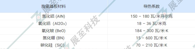 這是不同陶瓷 PCB 基板的導(dǎo)熱系數(shù)表。