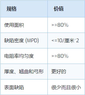 表 1. 優(yōu)質(zhì) SiC 晶圓規(guī)格