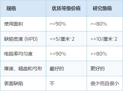表 4. 優(yōu)質(zhì)級與研究級 SiC 晶圓之間的規(guī)格差異