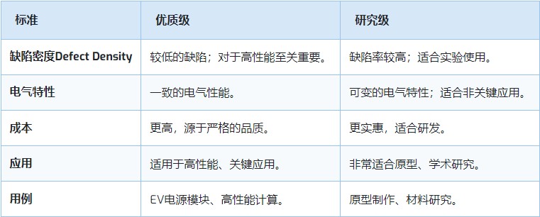 表3.優(yōu)質(zhì)級與研究級 SiC 晶圓之間的決策